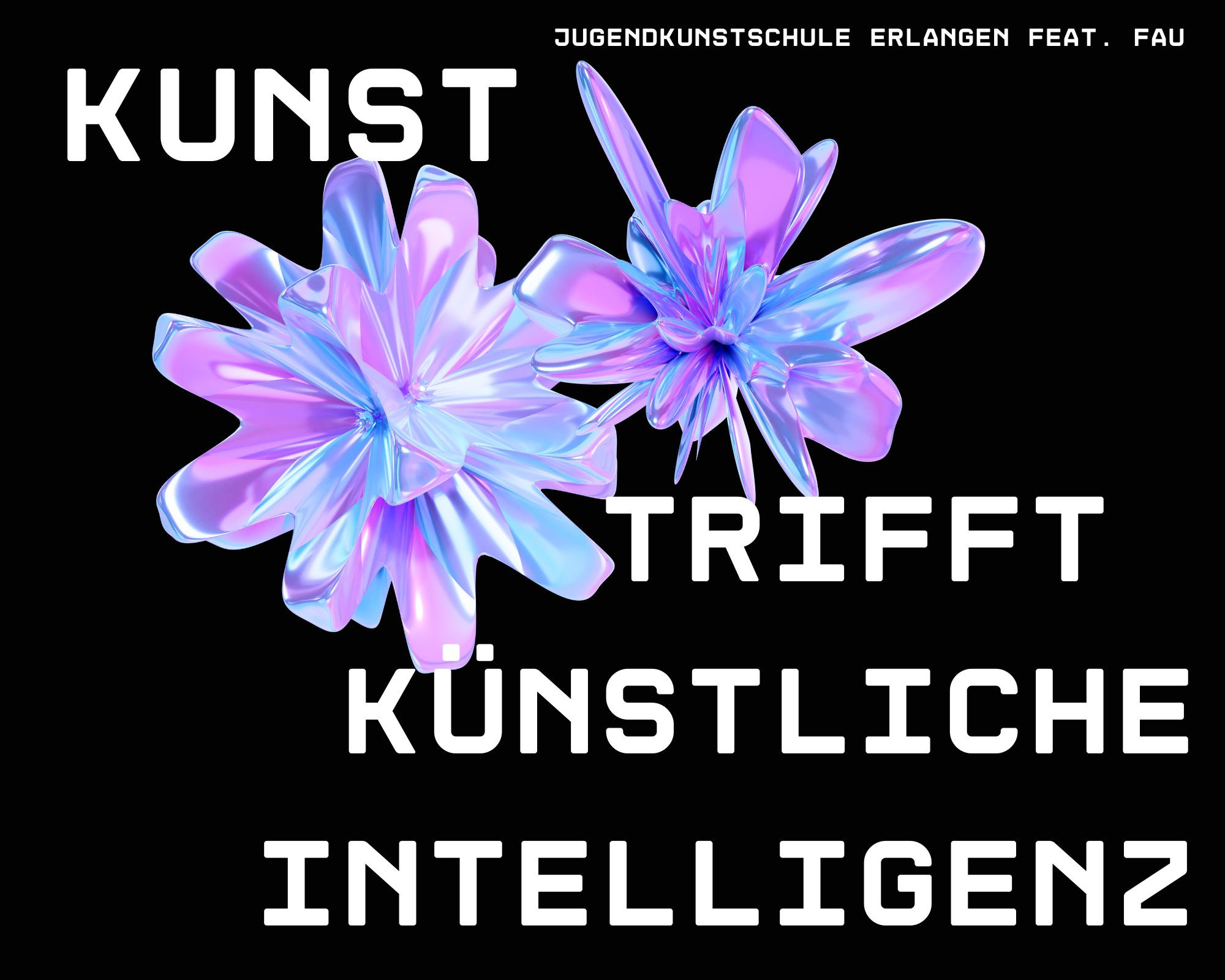 Was passiert, wenn Kunst und Künstliche Intelligenz aufeinandertreffen? In diesem Projekt kannst du eigene Ideen einbringen, mit analogen und digitalen Mitteln experimentieren und die KI als Werkzeug, Material oder vielleicht sogar als Mitspielerin entdecken. Gemeinsam probieren wir aus, wie neue Bilder, Sounds oder Räume entstehen können – und was das mit uns und unserer Welt zu tun hat. Es geht um Kommunikation, Fragen, Überraschungen und um deine Sicht auf die Dinge.Die Workshop-Reihe „Künstliche Intelligenz und intelligente Kunst" ist ein Forschungsprojekt und wird von einer wissenschaftlichen Evaluation begleitet. Sie ist eine Zusammenarbeit der JuKS und dem Lehrstuhl für Pädagogik mit dem Schwerpunkt Kultur und ästhetische Bildung / UNESCO Chair in Arts and Culture in Education der Friedrich-Alexander-Universität Erlangen-Nürnberg im Rahmen des BMBF-Verbundprojekts „Artificial Intelligence for Arts Education (AI4ArtsEd)“. Mit der Anmeldung zum Workshop stimmen Sie der Teilnahme am Forschungsprojekt zu.